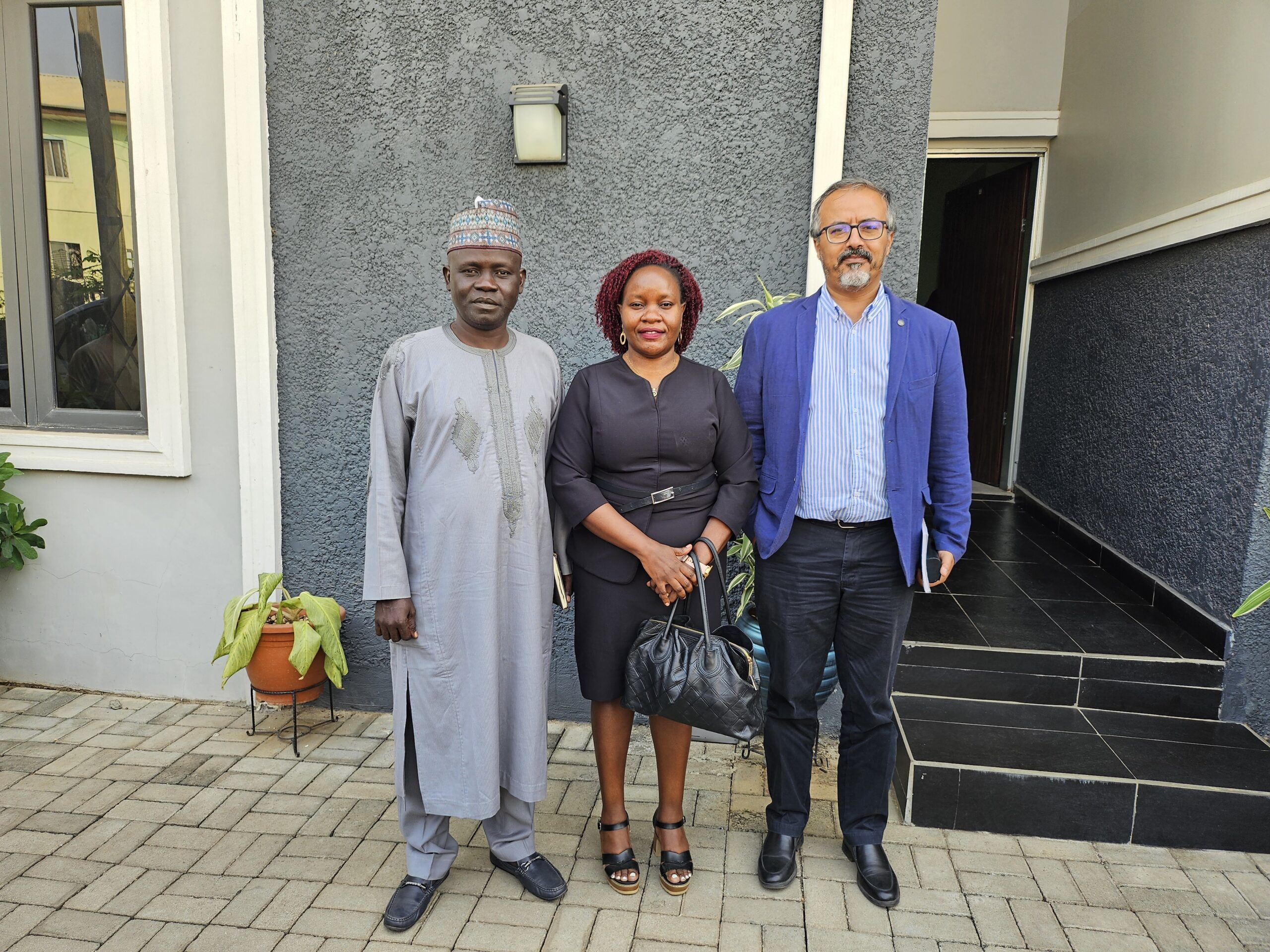 CAPTION: The National Project Coordinator NEWMAP-EIB, Engr Anda Ayuba Yalaks NIAE FNAH FNIWE (L), Houcen Agrebe (Head of Operations UNOPS)(R), Hazel Natukinda (Project Manager) (M).