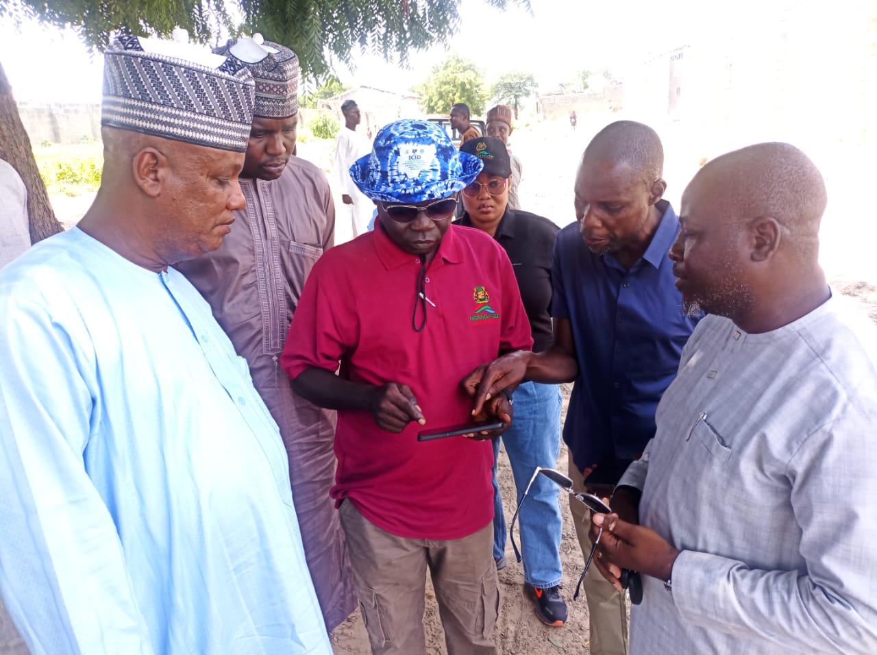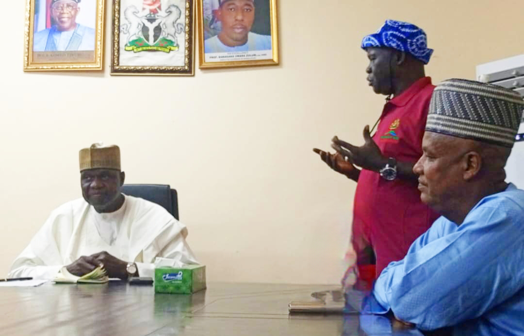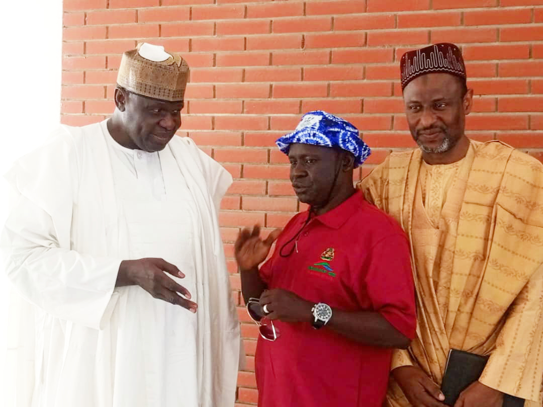 The SSG of Borno State and the National Project Coordinator, NEWMAP-EIB, in a tête-à-tête, while the Honourable Commissioner looks on.