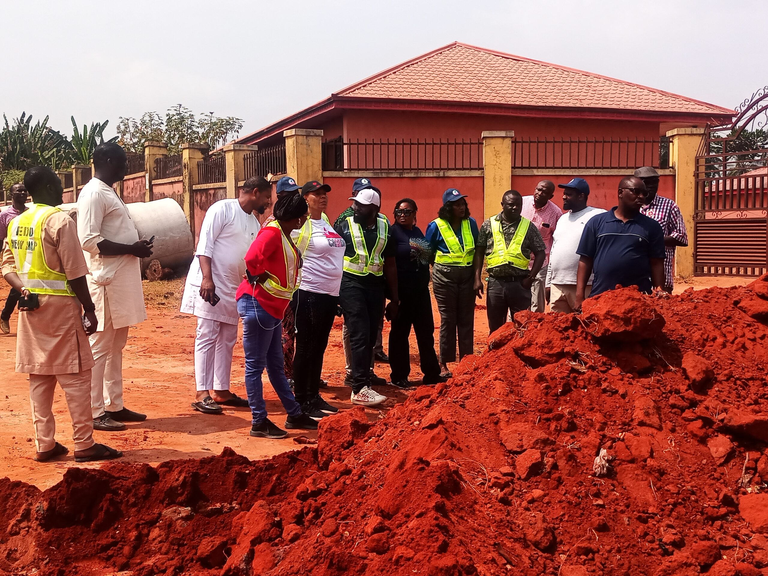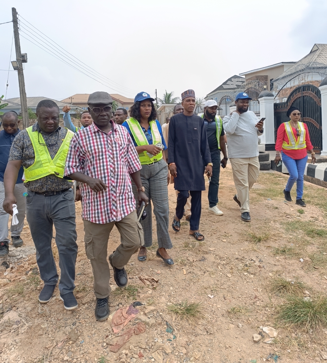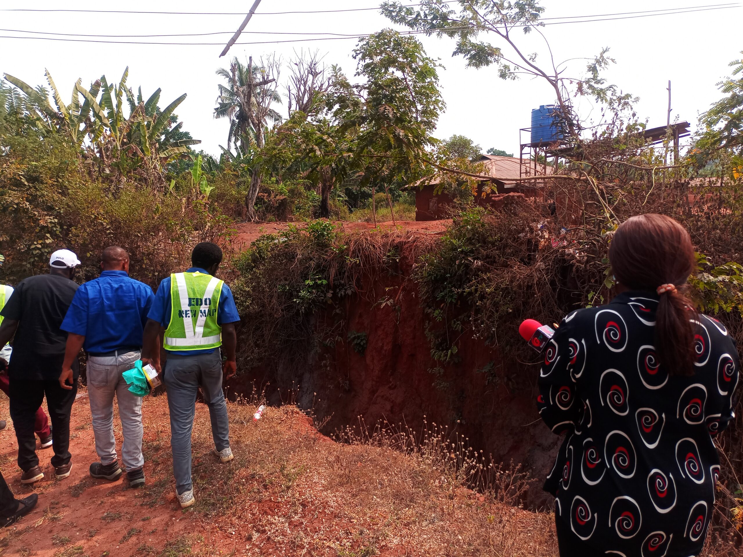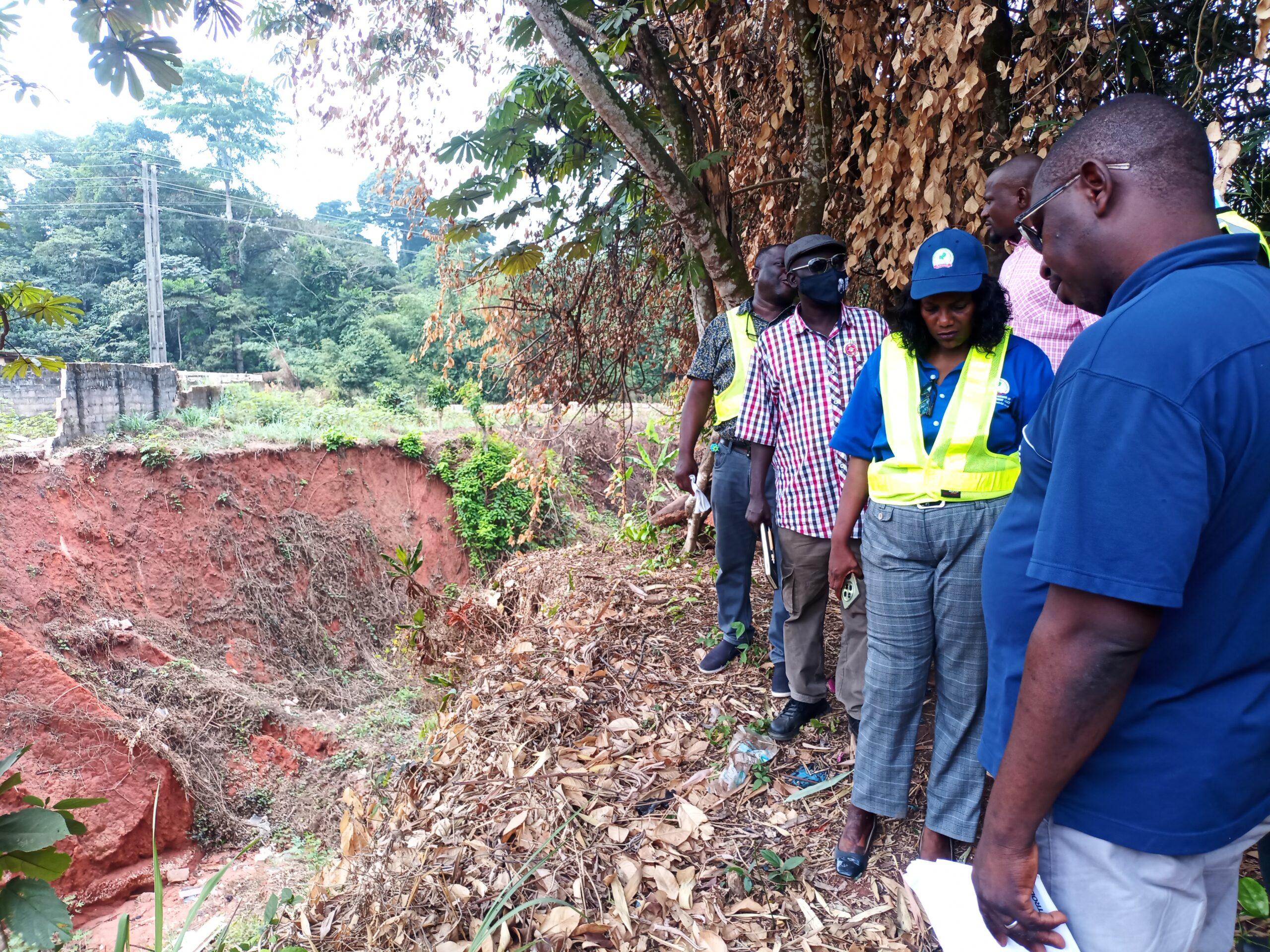 The National Project Coordinator NEWMAP-EIB, Engr. Anda Ayuba Yalaks NIAE FNAH FNIWE, flanked by the SPC EdoFEWMA and other top government officials recently, during the Edo scoping mission to gully erosion sites in the state.