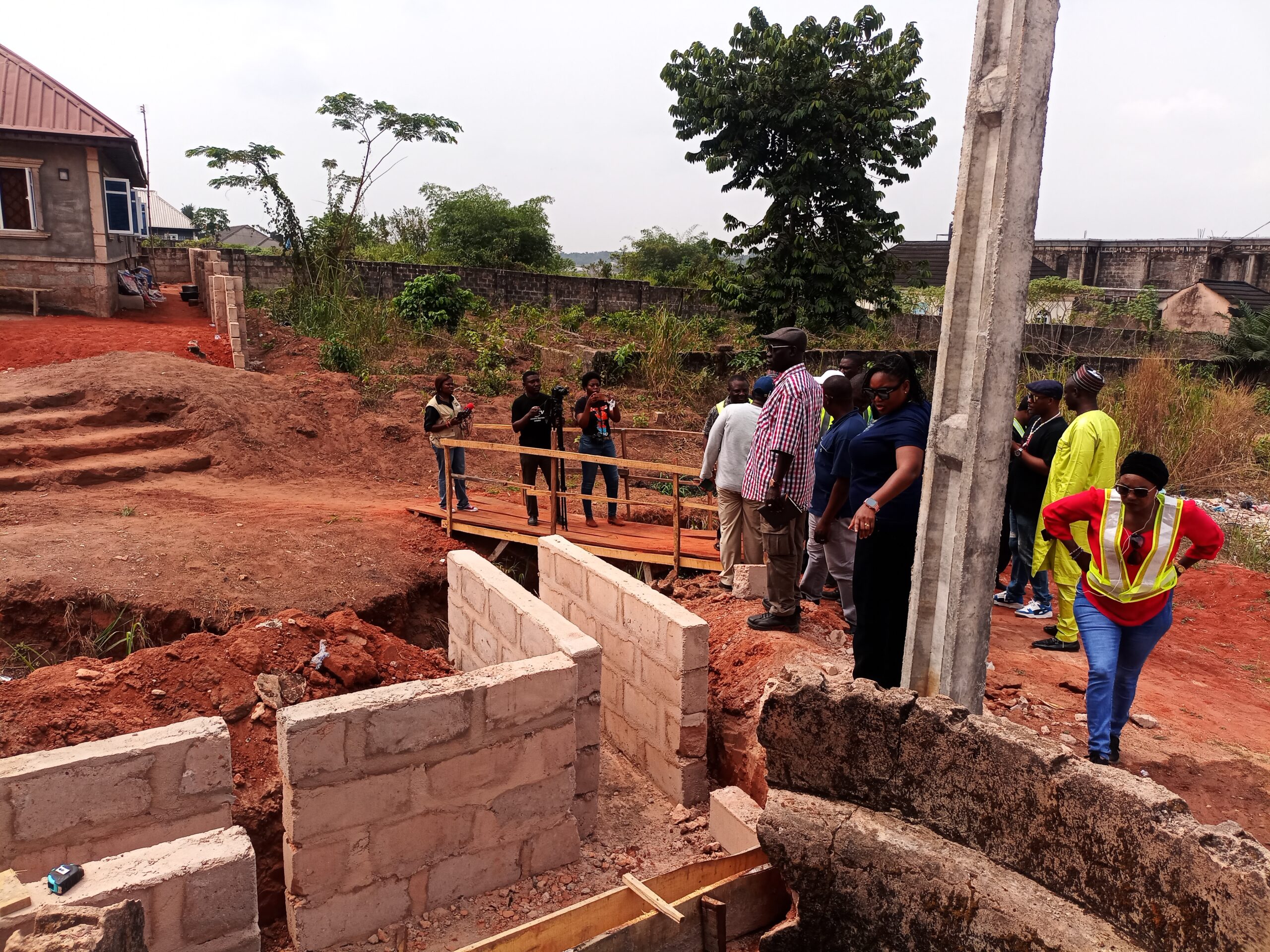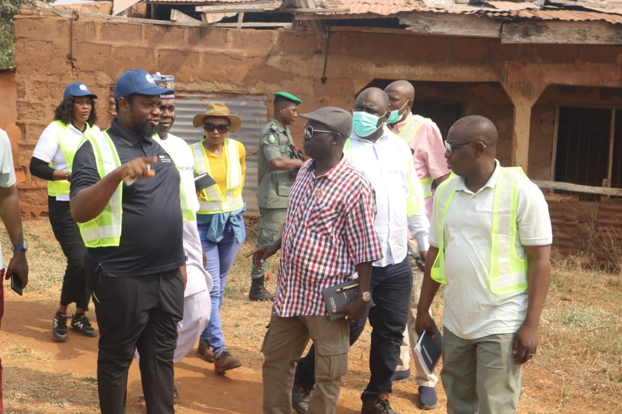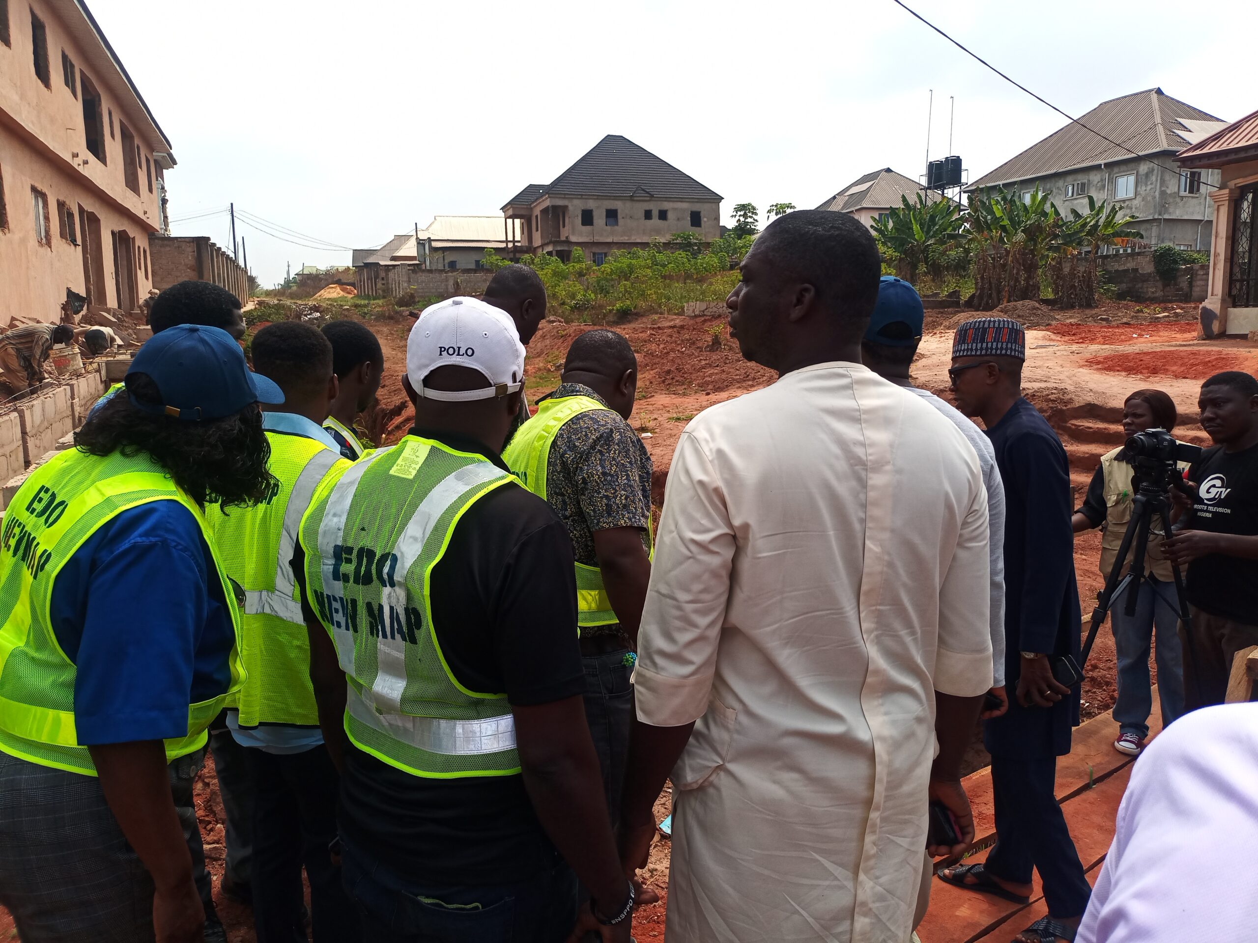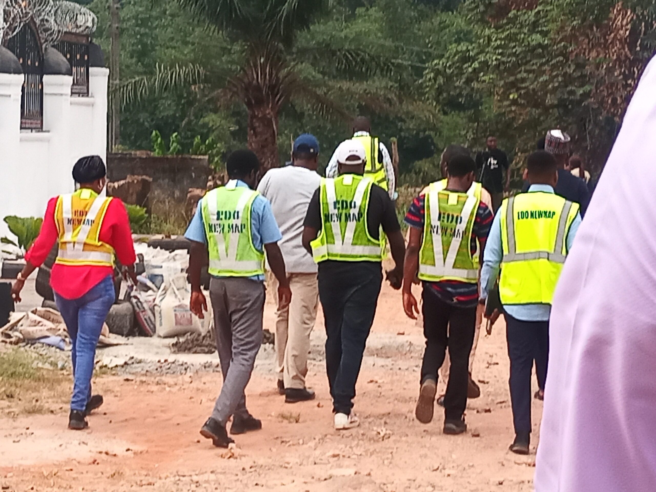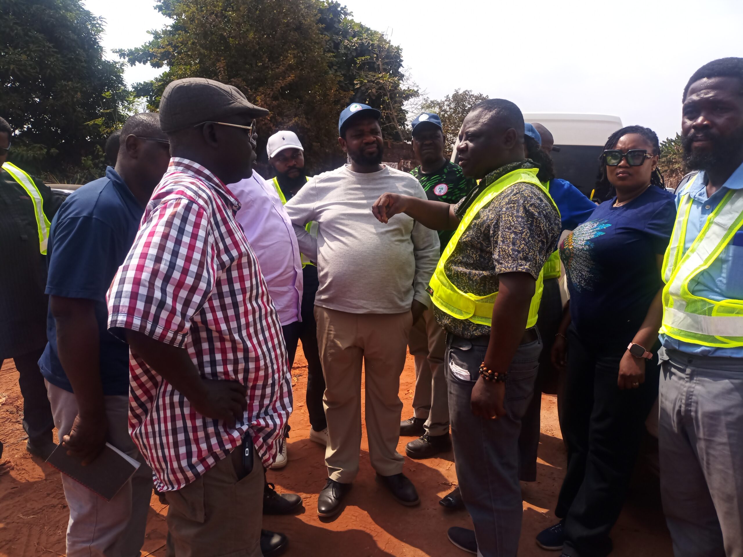 The National Project Coordinator NEWMAP-EIB, Engr. Anda Ayuba Yalaks NIAE FNAH FNIWE, flanked by the SPC EdoFEWMA and other top government officials recently, during the Edo scoping mission to gully erosion sites in the state.